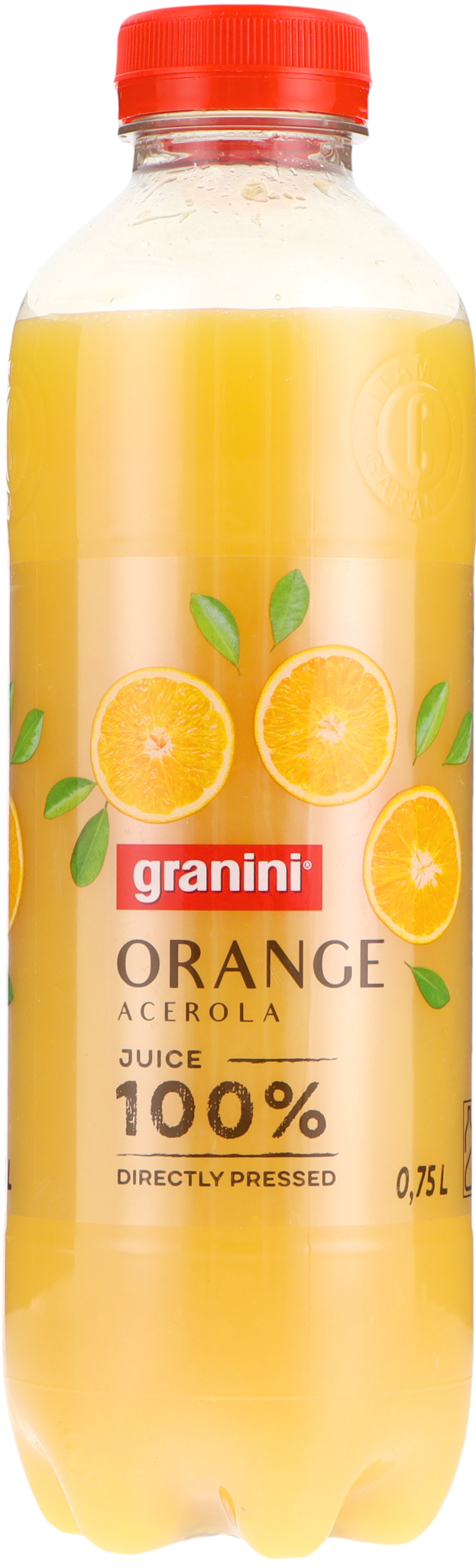 Värskelt pressitud viljalihaga apelsinimahl ja kasulik acerola-kirss. Selle mahla valmistamiseks kasutatakse ainult päikeselises Brasiilias kasvanud apelsine. Nautige kordumatut ja lummavat troopilist maitset, mis viib teid päikeselistesse maadesse! Loomulikult ei ole granini apelsinimahla lisatud suhkrut, värv- ega säilitusaineid.